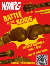 Calling all USM bands! WMPG is hosting our next Battle of the Bands, and we’re looking for student groups ready to bring the noise and show off their talent. It happens on November 18th – starting at 7pm in the USM McGodldrick building on the USM Portland Campus. Whether you play rock, hip-hop, indie, jazz, are a singer songwriter or with something totally new, we want to hear you! This is your chance to perform...