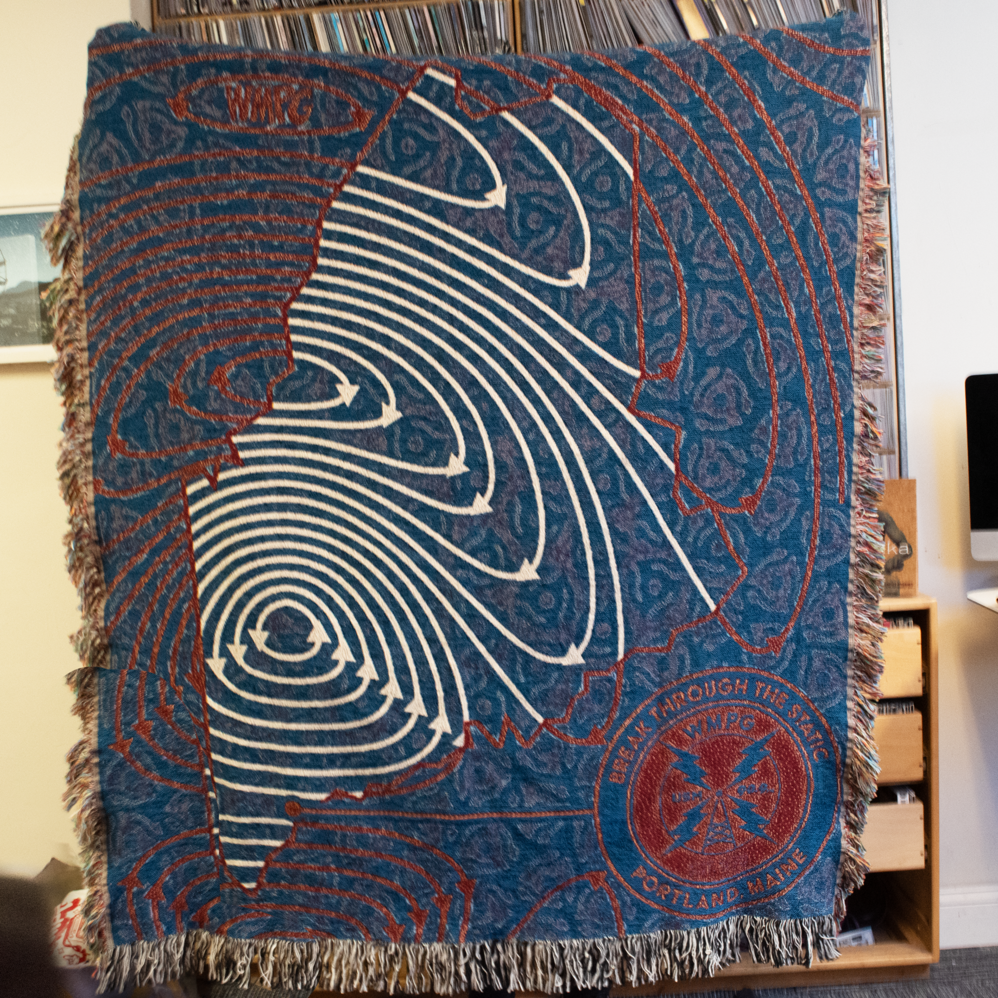 Bundle up from the cold Maine weather with the WMPG Maine waves blanket!
